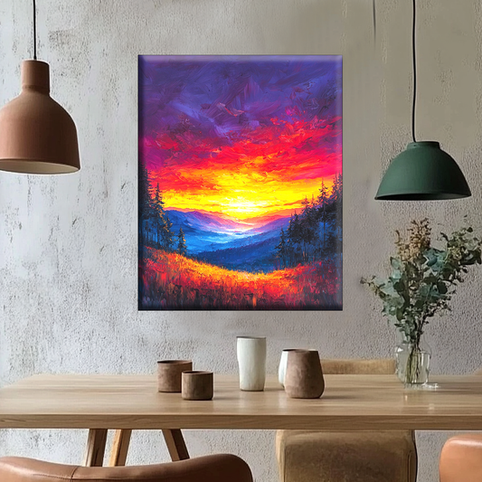Abendglut über den Hügeln - Malen nach Zahlen