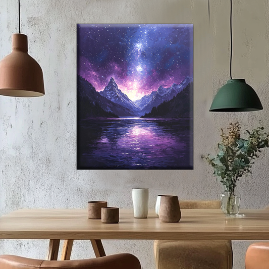 Sternennacht über dem Bergsee - Malen nach Zahlen