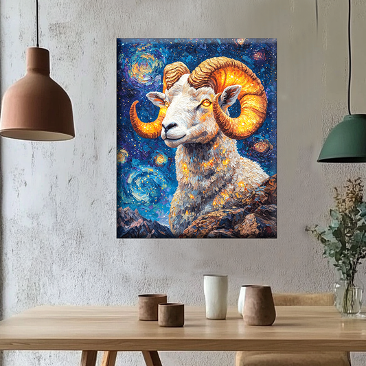 Widder unter Sternenhimmel - Malen nach Zahlen