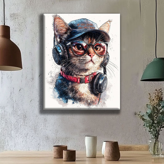 Hipsterkatze mit Kopfhörern - Malen nach Zahlen