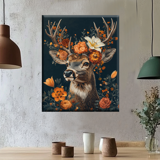 Hirsch-im-Blütenkranz - Malen nach Zahlen