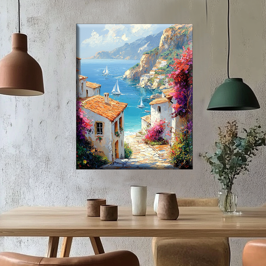 Mediterrane Bucht im Sonnenschein - Malen nach Zahlen