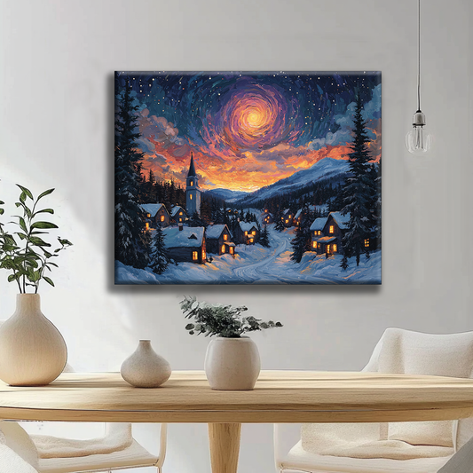Sternennacht Dorf - Malen nach Zahlen