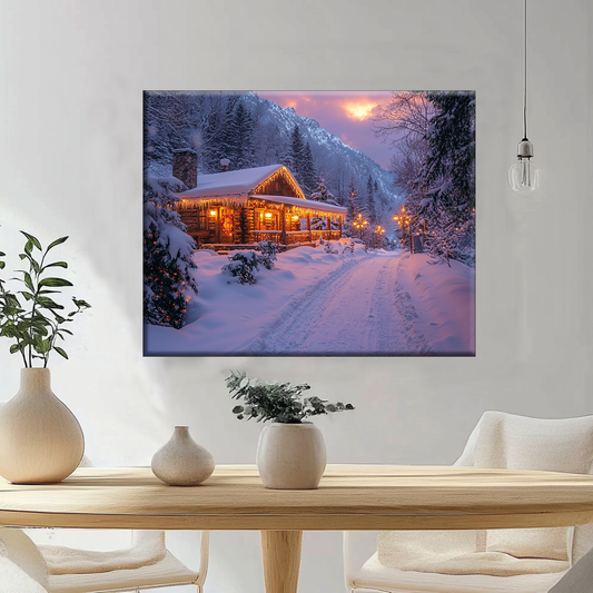 Winterliche Berghütte - Malen nach Zahlen