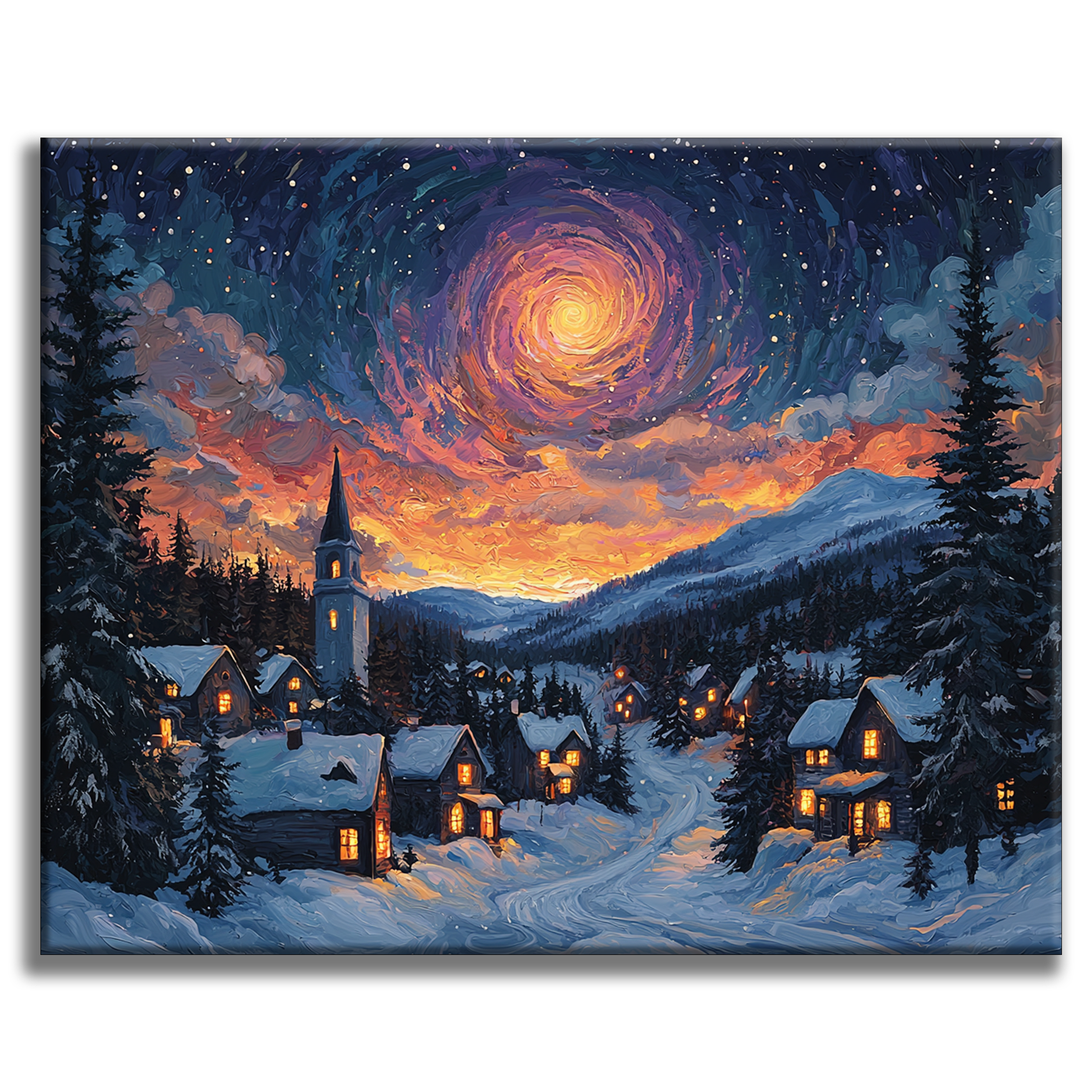 Sternennacht Dorf - Malen nach Zahlen